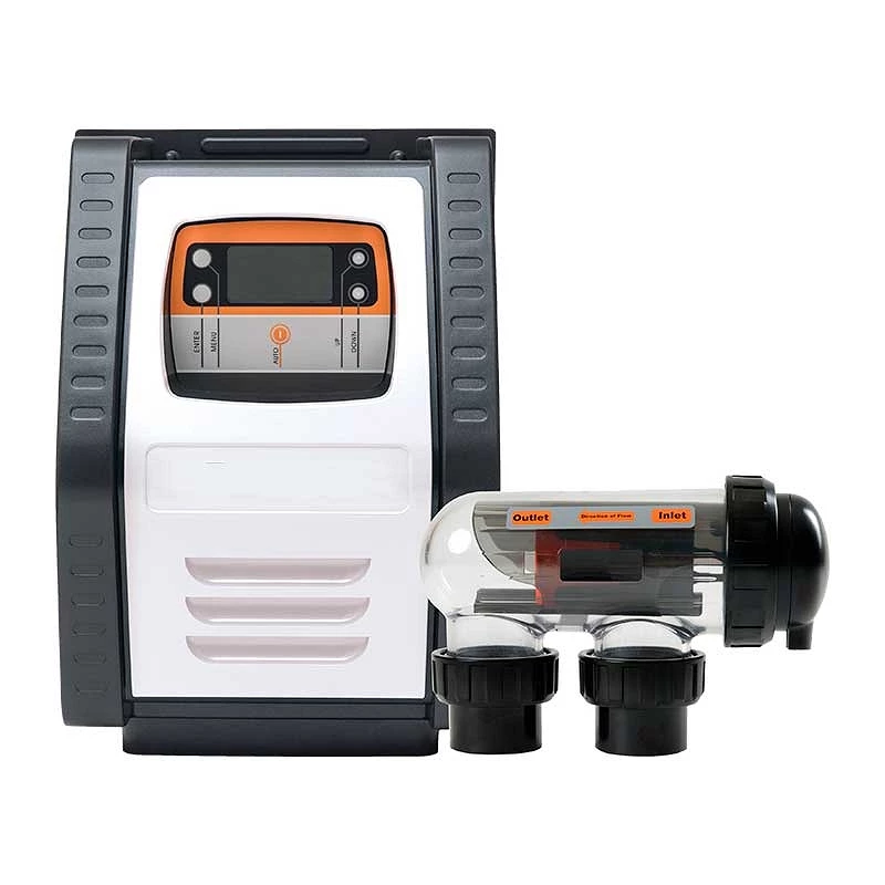 La pantalla táctil es muy fácil de usar y permite tener un control completo de la bomba y del sistema de desinfección. Gracias a su facilidad de uso, el clorador de la E-Series le permite seleccionar los niveles salida de cloro del 1 al 8.