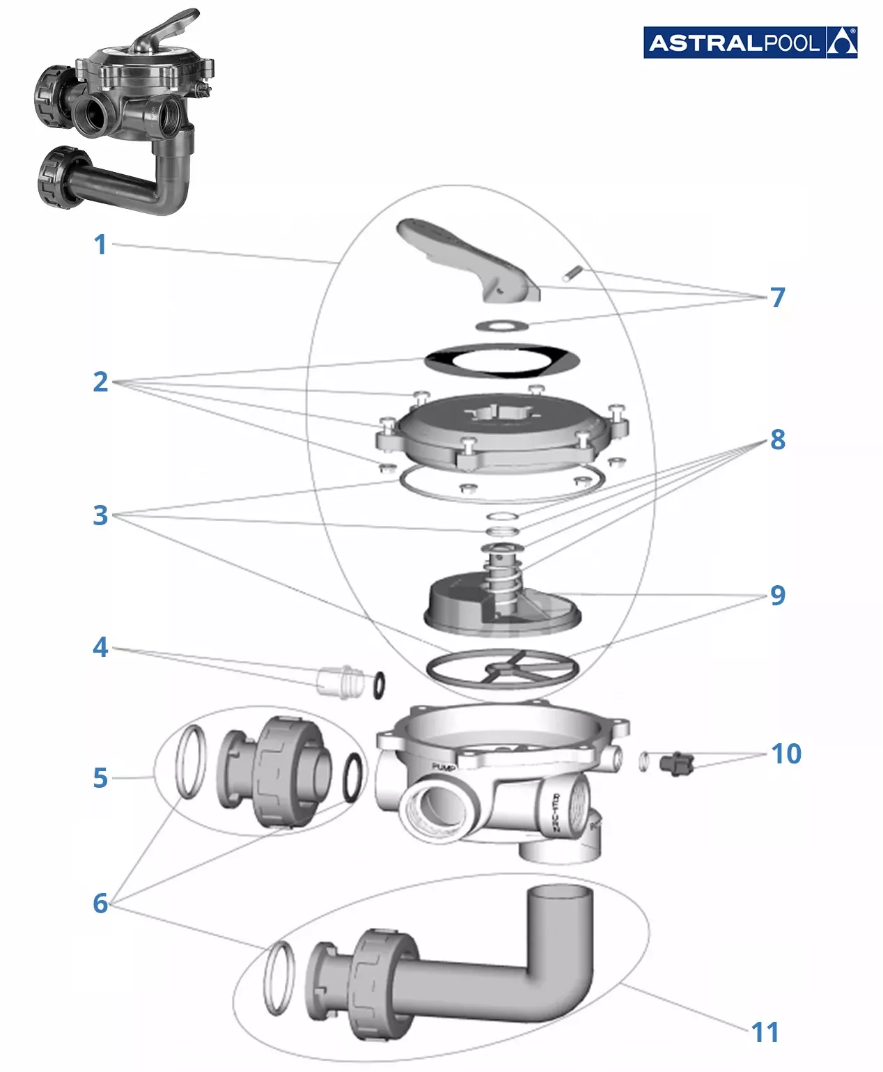 /Inicio/Recambios/Recambios Válvulas Selectoras/Recambios válvula selectora Astralpool lateral 1" 1/2 Flat 34543