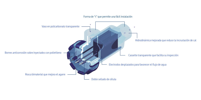 - Nueva célula exclusiva con hidrodinámica mejorada y mayor superficie eficaz de electrodo