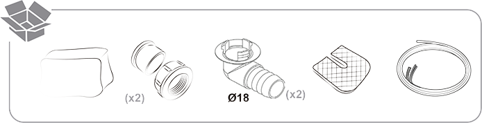 - Accesorios incluidos: funda de hibernación, kit de drenaje de condensado, pie antivibración (4 uds) y unión pvc Ø50 (2 uds)