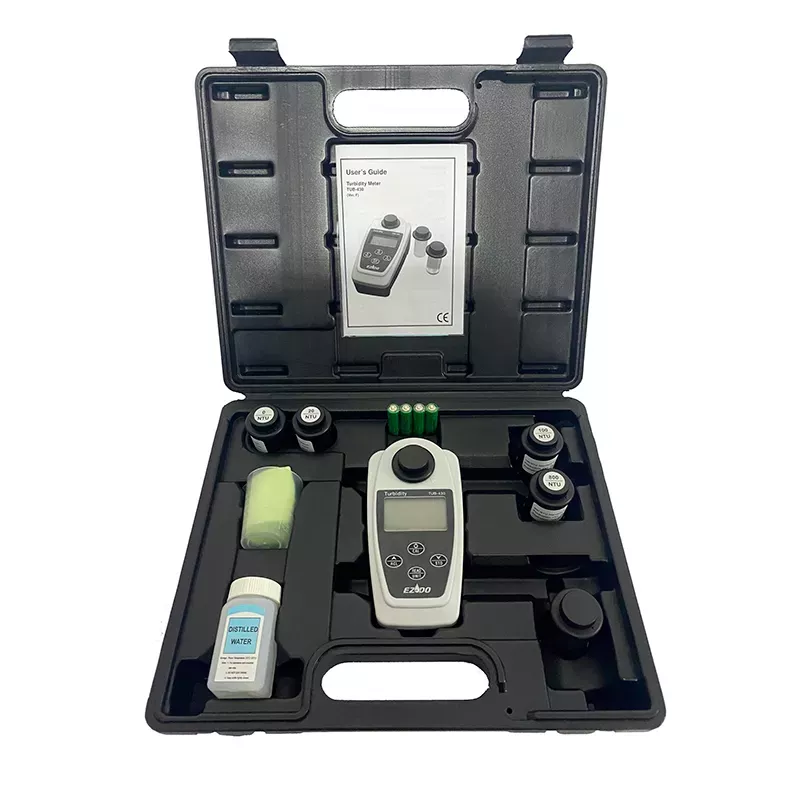 - Calibración del equipo con 4 estándares: 0.0, 20, 100 y 800 NTU