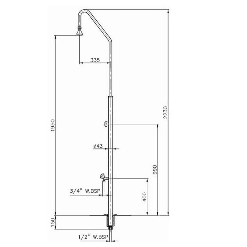 Ducha para piscina fabricada en acero inoxidable 18/8, tubo Ø 43, con anclaje incorporado 00107 para aclar solidamente al suelo.