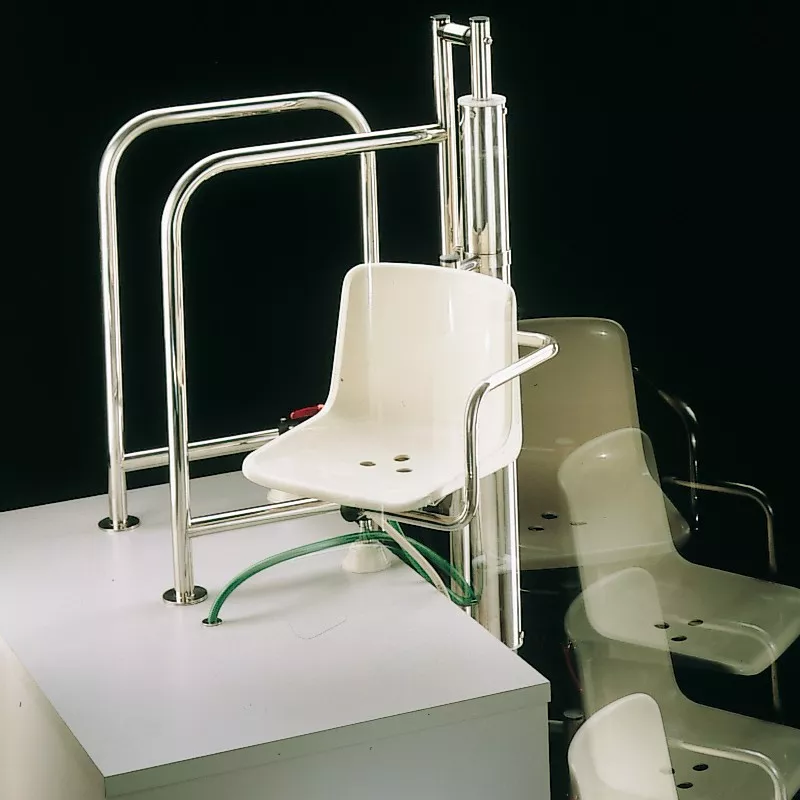 Subida: Accionando nuevamente la llave, la silla recupera su posición inicial al llenarse el pistón con el agua de la red.