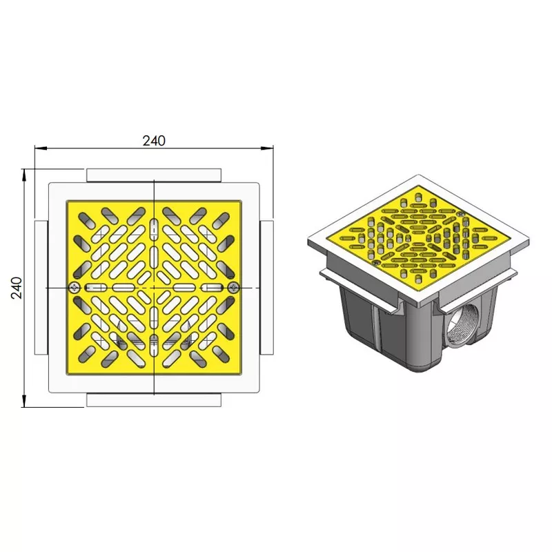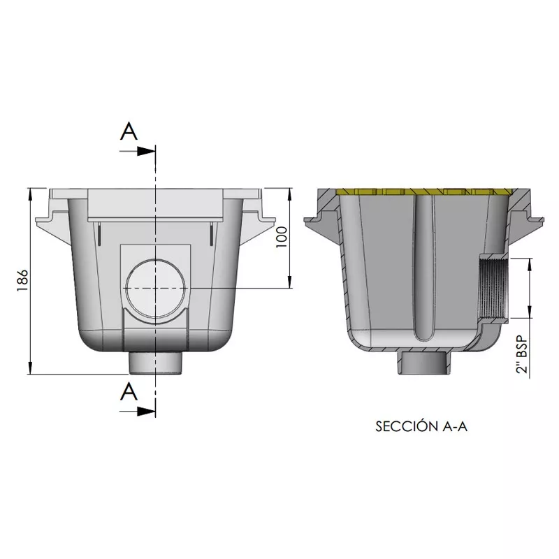 - Sumidero con rejilla cuadrado 210 mm x 210 mm