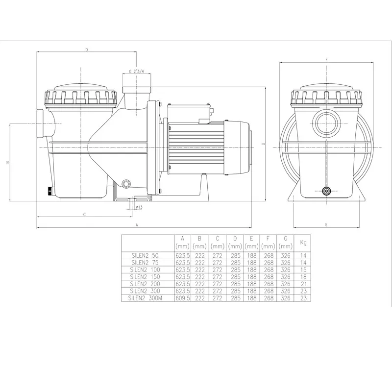 Bomba de piscina monofásica de 1,5 cv, monocelulares con elementos de filtración incorporados, diseñadas para obtener el prefiltado y la recirculación del agua en las piscinas. Completamente silenciosas y de servicio continuo, con dos tapones purga, prefiltro de gran capacidad con tapa transparente y cierre antibloqueo.
