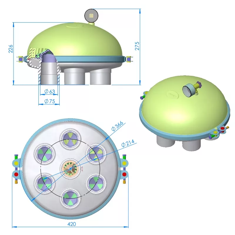 - Dispone de 6 salidas de Ø63 (conexión europea) o Ø1 1/2” (conexión USA).