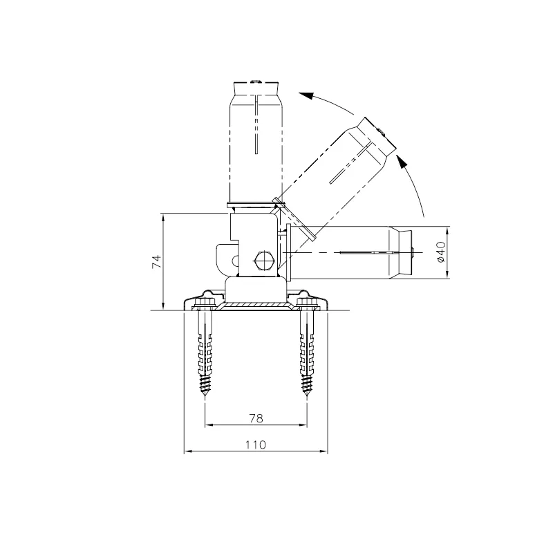 - Anclaje articulado de acero inoxidable 18/8 (AISI-304) para escalera, tubo Ø43.
