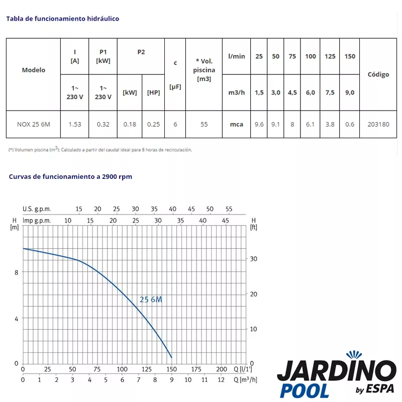 Bomba piscina Jardino Pool Nox 25 6M Monofásica