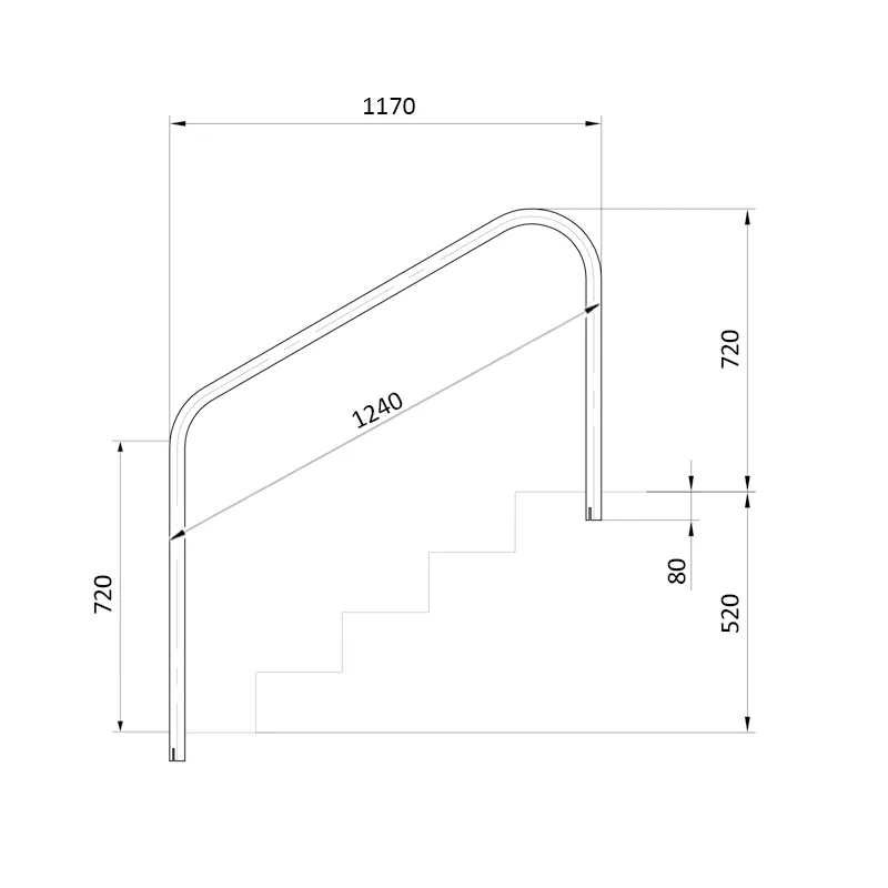 Handlauf für Schwimmbäder zum Einlassen 1.220 mm. AISI-316