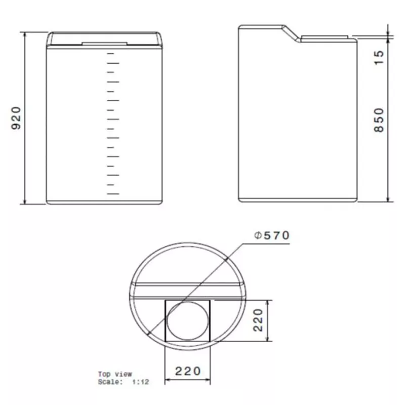 Abmessungen des Polyethylentanks 250 lt.