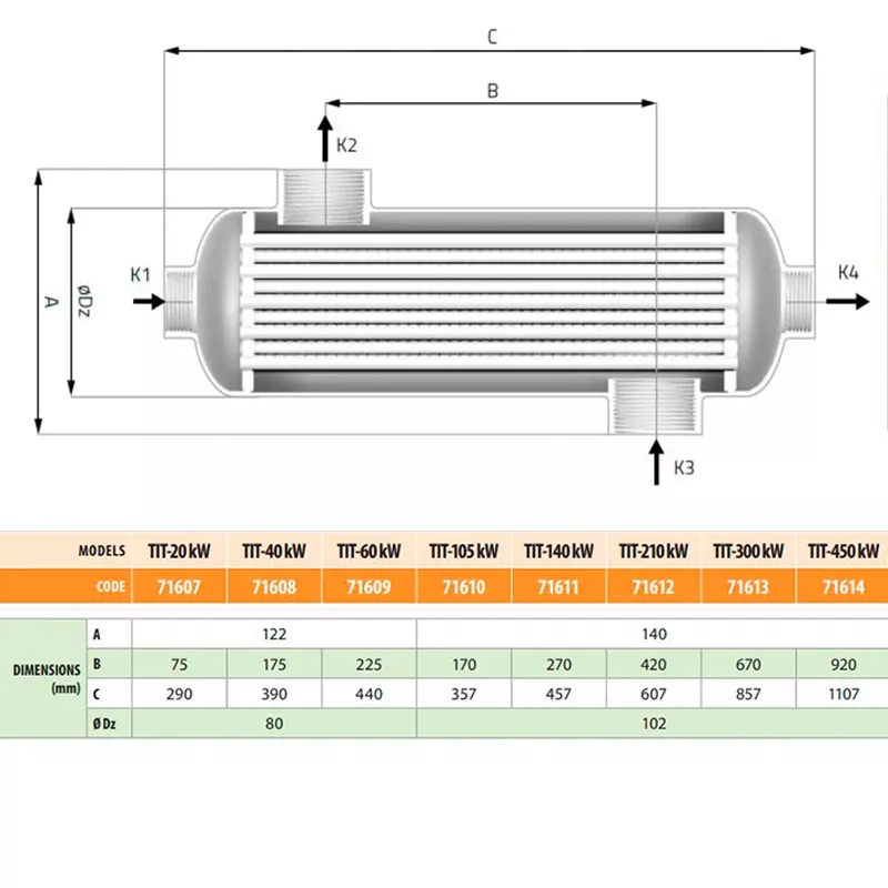 Wasser-Wasser-Wärmetauscher Astralpool Waterheat EVO TIT-105 KW