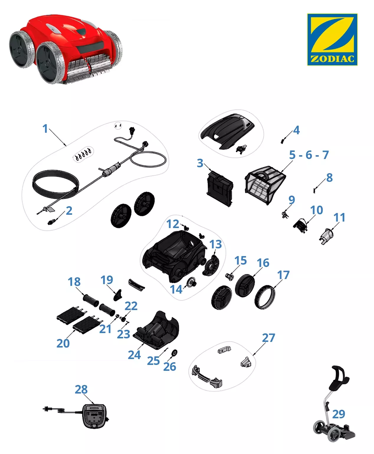 Zodiac Ersatzteile für Reinigungsgeräte Zentrale Stützrollen