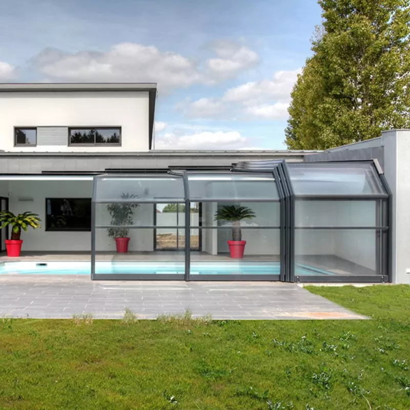 Poolüberdachung für ein hohes Doppelschwimmbecken