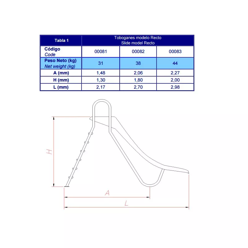 Höhe der Schwimmbadrutsche 2.000 mm.