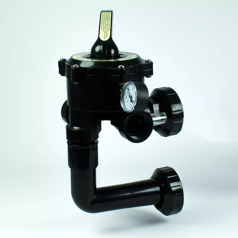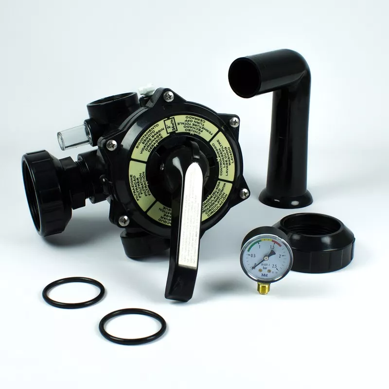 Das Umschaltventil ist ein wesentlicher Bestandteil von Sandfiltern für die Reinigung von Schwimmbädern. Der Griff wird verwendet, um zwischen den verschiedenen Funktionen in einem hydraulischen Kreislauf zu wählen: Filtern, Entleeren, Schließen, Waschen, Umwälzen und Spülen des Filters.