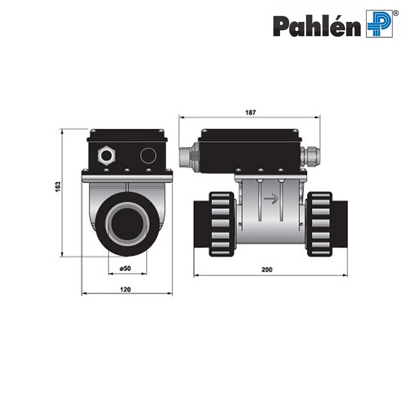 - Klein und kompakt mit 200 mm Länge und Anschlüssen mit 50 mm Ø