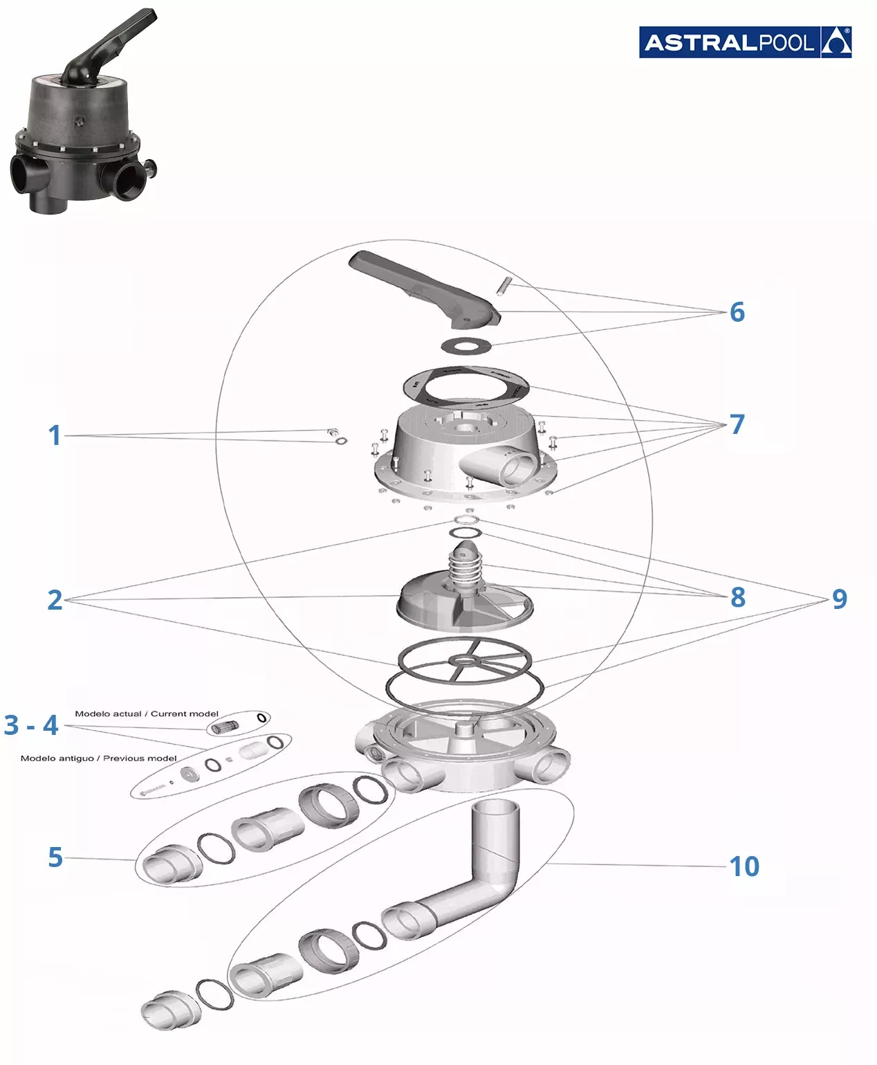 Ersatzteile für Umschaltventil Astralpool 2" 1/2 Magnum 24837