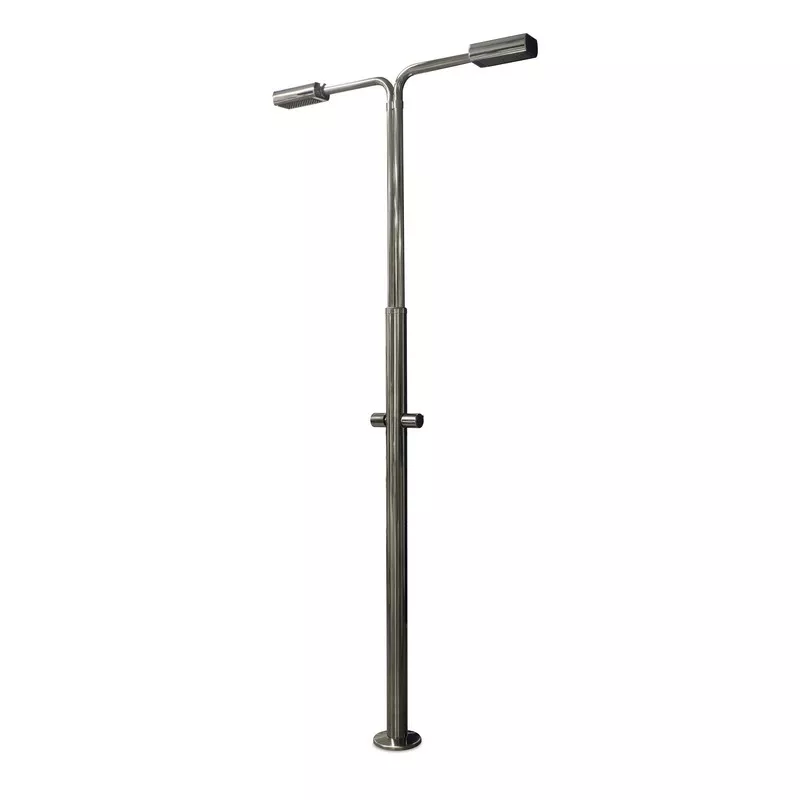 Engelsdusche mit 2 Brauseköpfen und 2 Ventilen aus Edelstahl 304 mit einem Durchmesser von 63 mm und integriertem Bodenverankerungssystem.