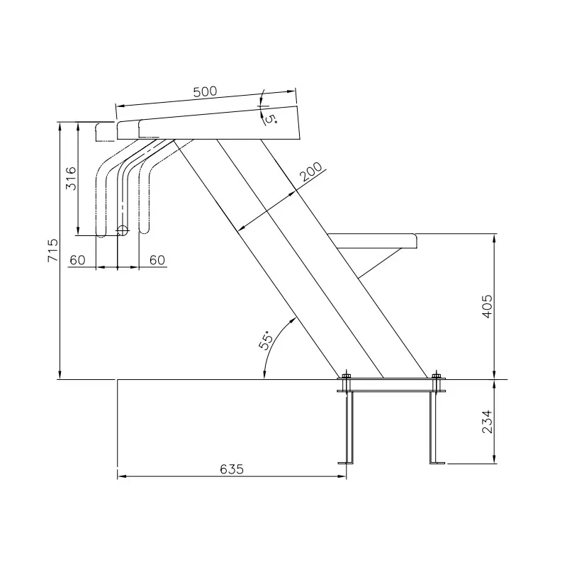 - Höhe von 700 mm und Plattform von 500 X 500 mm einstellbar