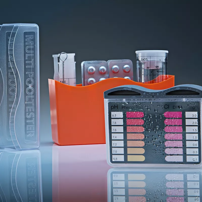 Analysiert das Wasser auf korrosive Wirkung und Neigung zur Kalkbildung, unerlässlich für die Feststellung, ob das Wasser ausgeglichen ist oder nicht, da es alle Komponenten für die Bestimmung von aktivem und freiem Chlor, pH-Wert, Kalziumhärte, Gesamtalkalinität und natürlich den Bedarf an Säure und Cyanursäure enthält. Diese Produkte entsprechen der UNE-ISO 1738.