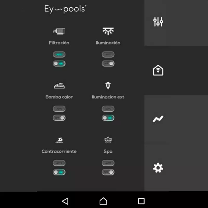 From Ey-pools you can also control other devices such as the outdoor lighting or the irrigation system.