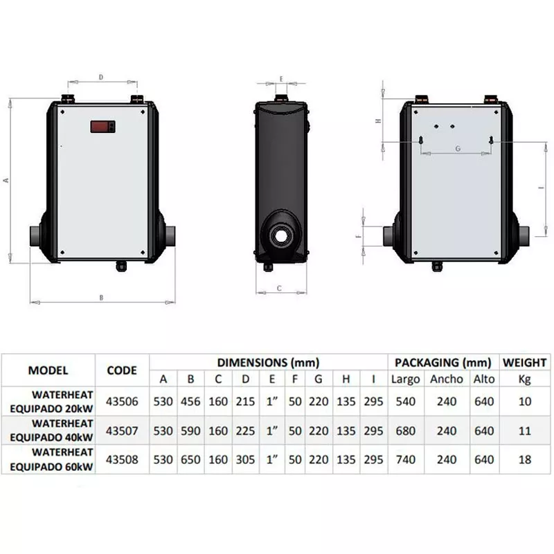Technical characteristics of the heat exchanger Astralpool Waterheat Equipped