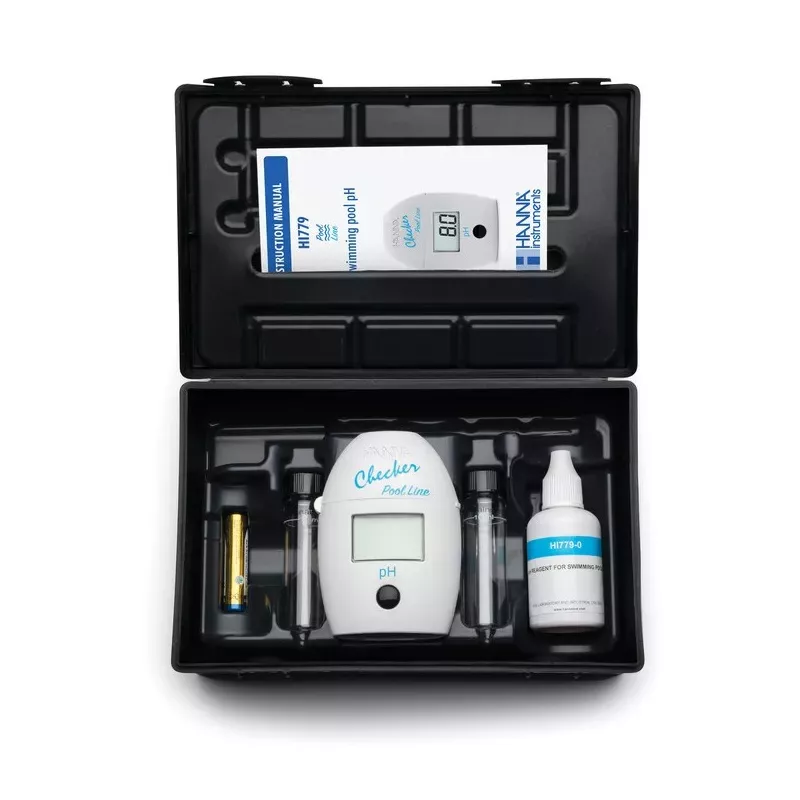 The HANNA HI 779 Checker pocket ph meter is a digital colorimeter for measuring pH between 6.5 and 8.5 in swimming pools, hot tubs and spas.