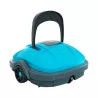cordless pool cleaner, powered by a lithium battery that offers freedom of movement. The robot automatically backs up when it hits a wall and moves to the shore when the battery is low.
