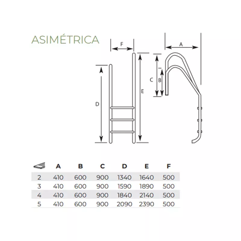 - Swimming pool ladder type ASYMMETRIC STANDARD