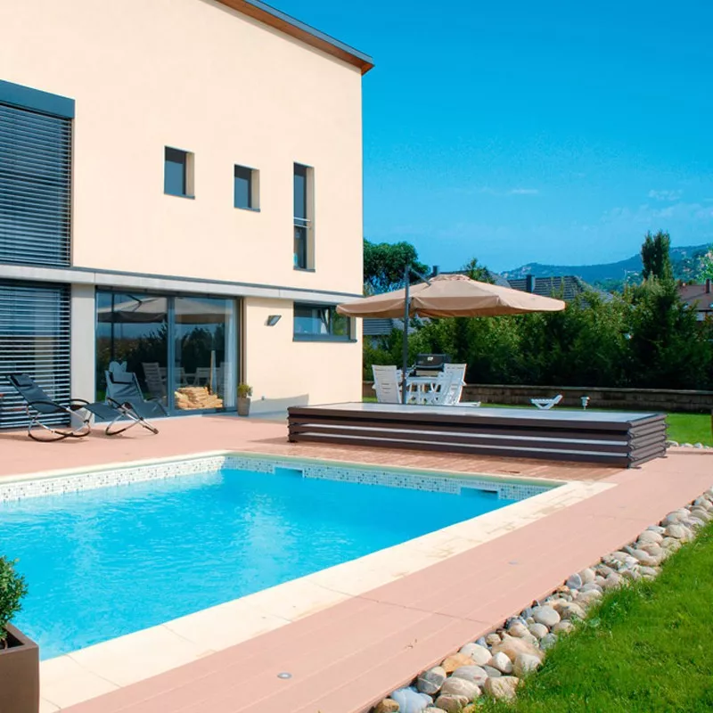 - The modules can be lifted and stacked at the end of the pool so that the pool is completely free.
