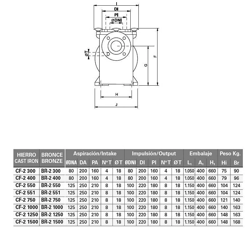 High flow centrifugal pump made of cast iron, with a pre-filter at the suction, which makes it the ideal pump for large filtration equipment.
