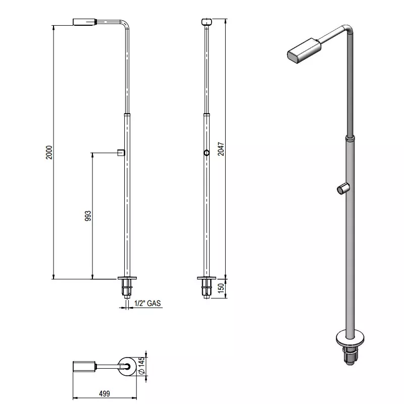 Technical characteristics of the Angel model pool shower with 1 shower head from Astralpool: