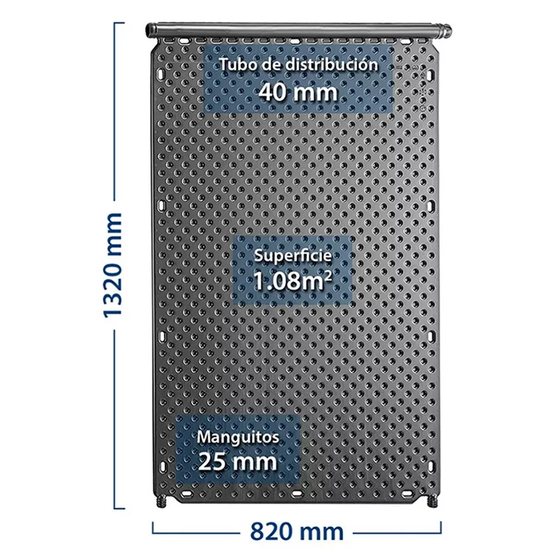 - Integrated collector tube Ø 40 mm and two connector sleeves Ø 25 mm