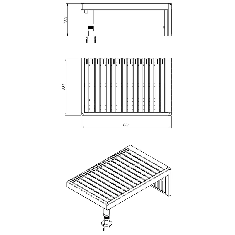 AstralPool has created a platform on which to fix the exit podiums. The product consists of an AISI-304 base and plastic grids.