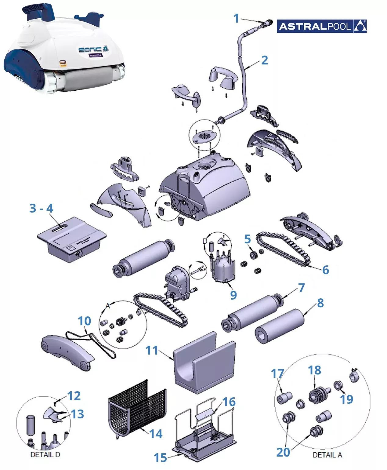 Pièces détachées pour nettoyeurs de piscine Astralpool