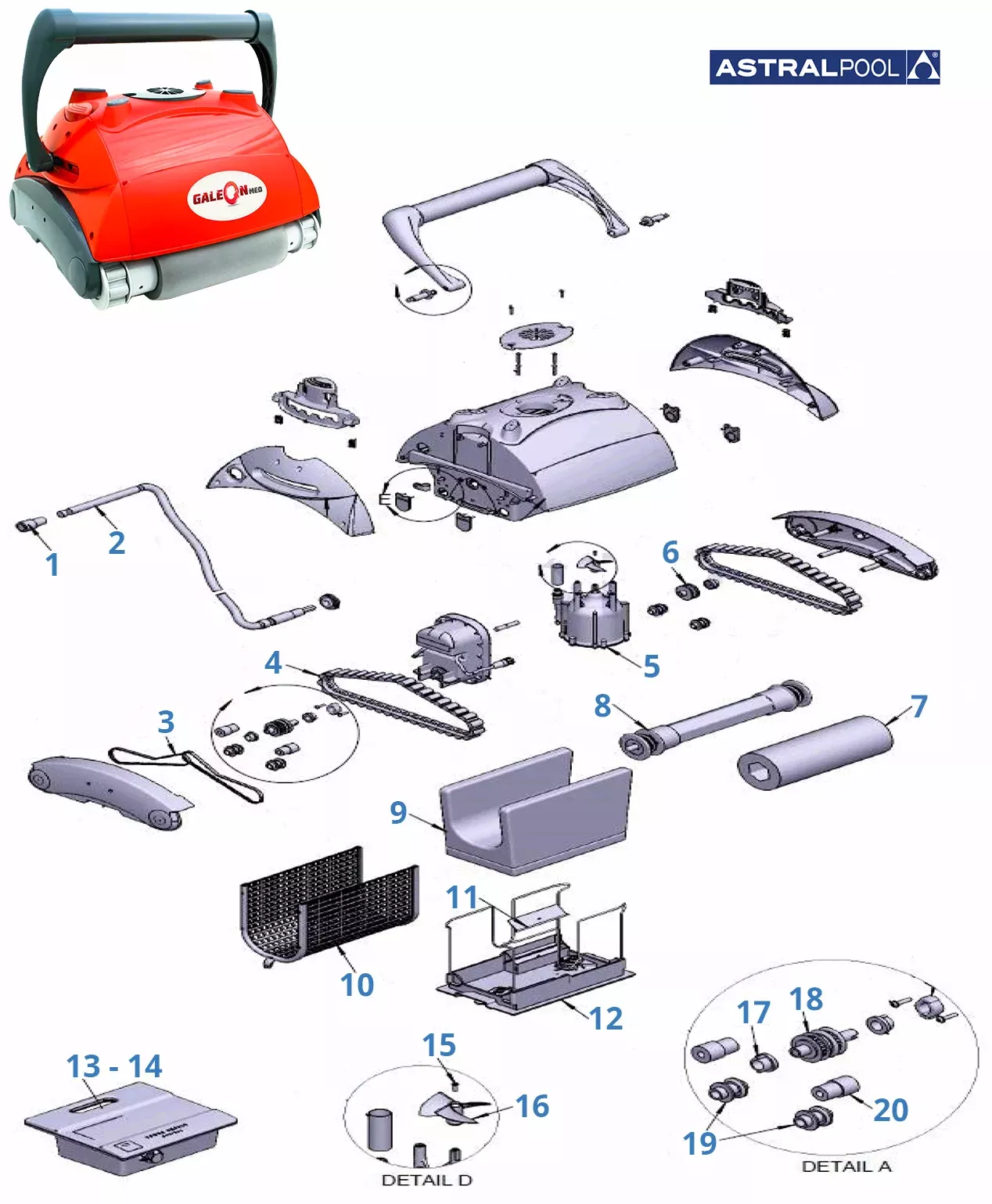 Pièces détachées pour nettoyeurs de piscine Astralpool