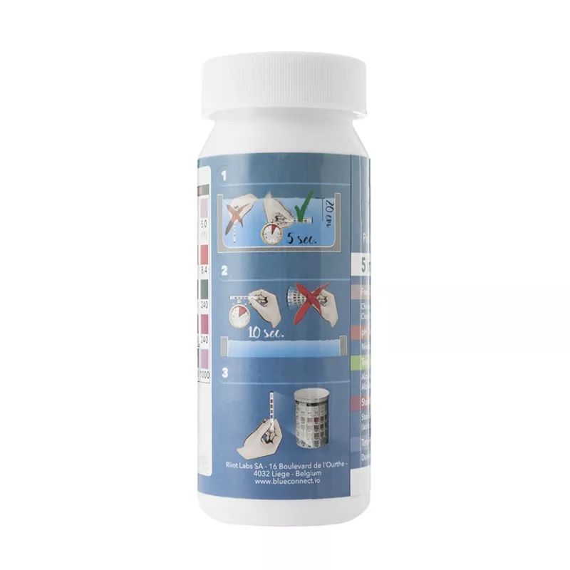 1º Téléchargez l'application Blue Connect et créez une nouvelle piscine avec l'assistant de l'application.2º Réalisez le test et saisissez manuellement les valeurs de la bande dans l'application.