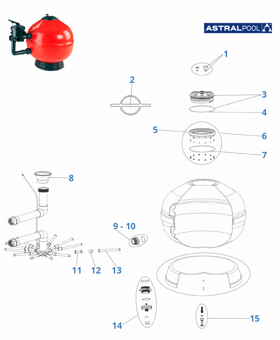 Pièces détachées filtre Astralpool Volcano (fileté)
