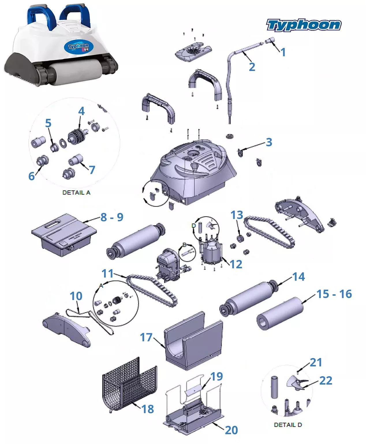Pièces détachées pour nettoyeurs de piscine Typhoon