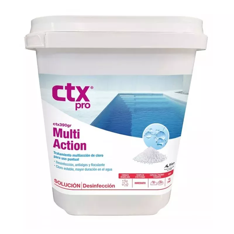 Il s'agit d'un composé solide granulé, spécialement formulé pour qu'une fois appliqué sur l'eau de la piscine, il élimine les bactéries, les virus et les micro-organismes en général, empêche la croissance des algues et maintient l'eau cristalline et limpide.