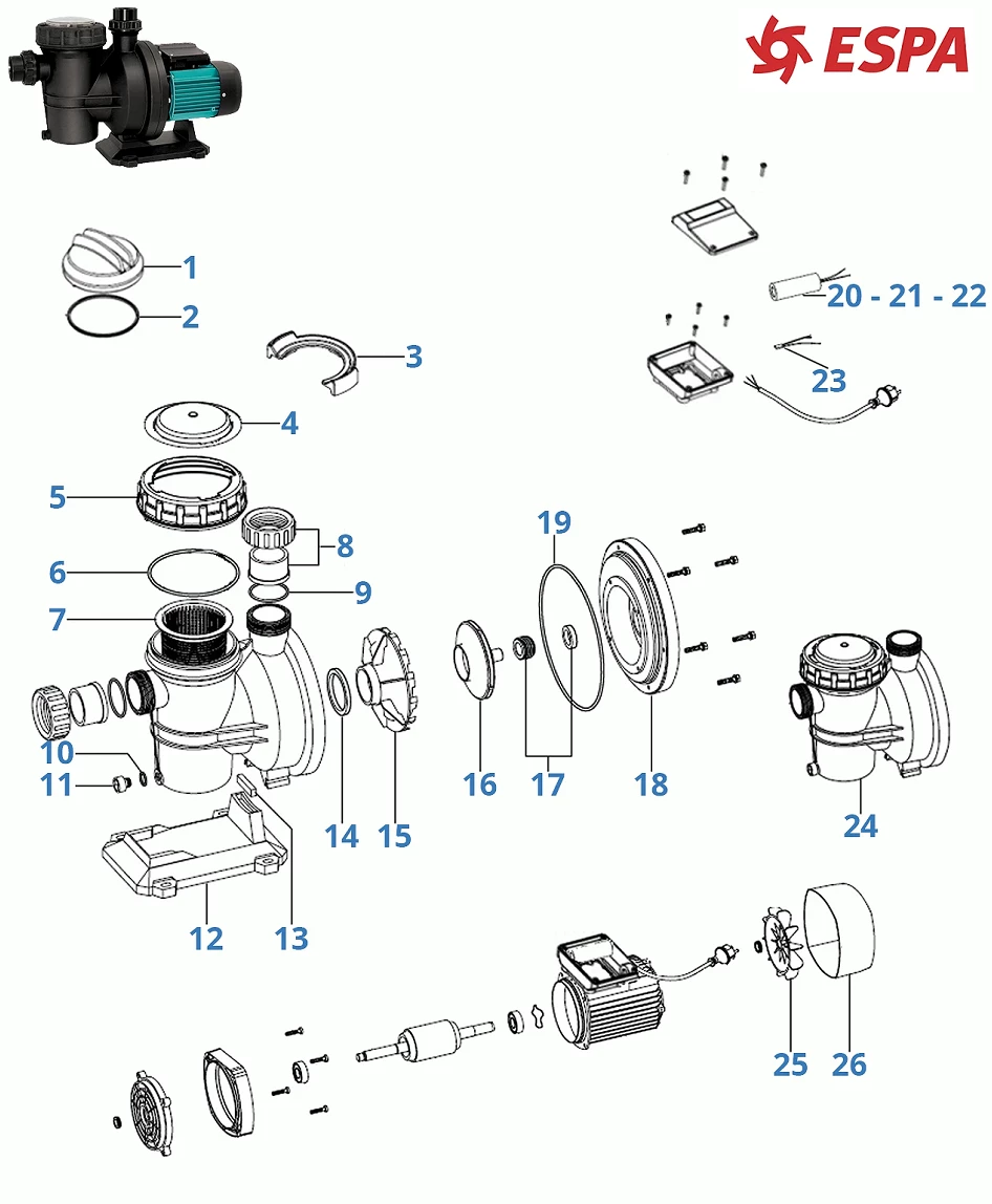Pompe de rechange ESPA Corps de pompe avec accessoires 133346
