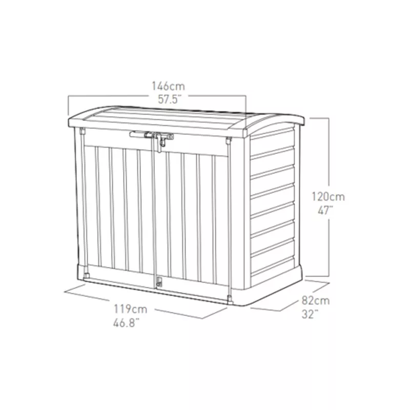 - Double porte et couvercle à charnières imitant le bois avec ouverture facile et charnières métalliques pour un meilleur accès (ouverture automatique avec pistons hydrauliques).