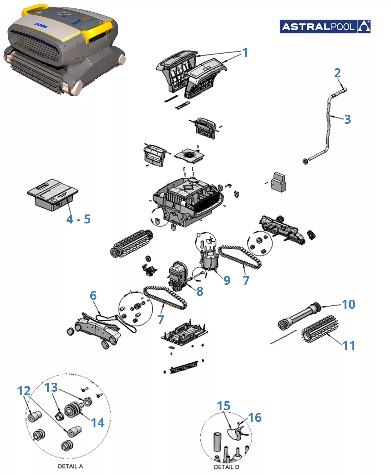 Pièces détachées pour nettoyeurs de piscine Astralpool