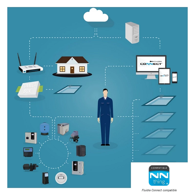 Fluidra Connect est la solution intelligente qui permet à l'utilisateur final et/ou au professionnel de contrôler la piscine à distance. Elle offre la possibilité de diagnostiquer, gérer et contrôler toutes les installations depuis un écran d'ordinateur.