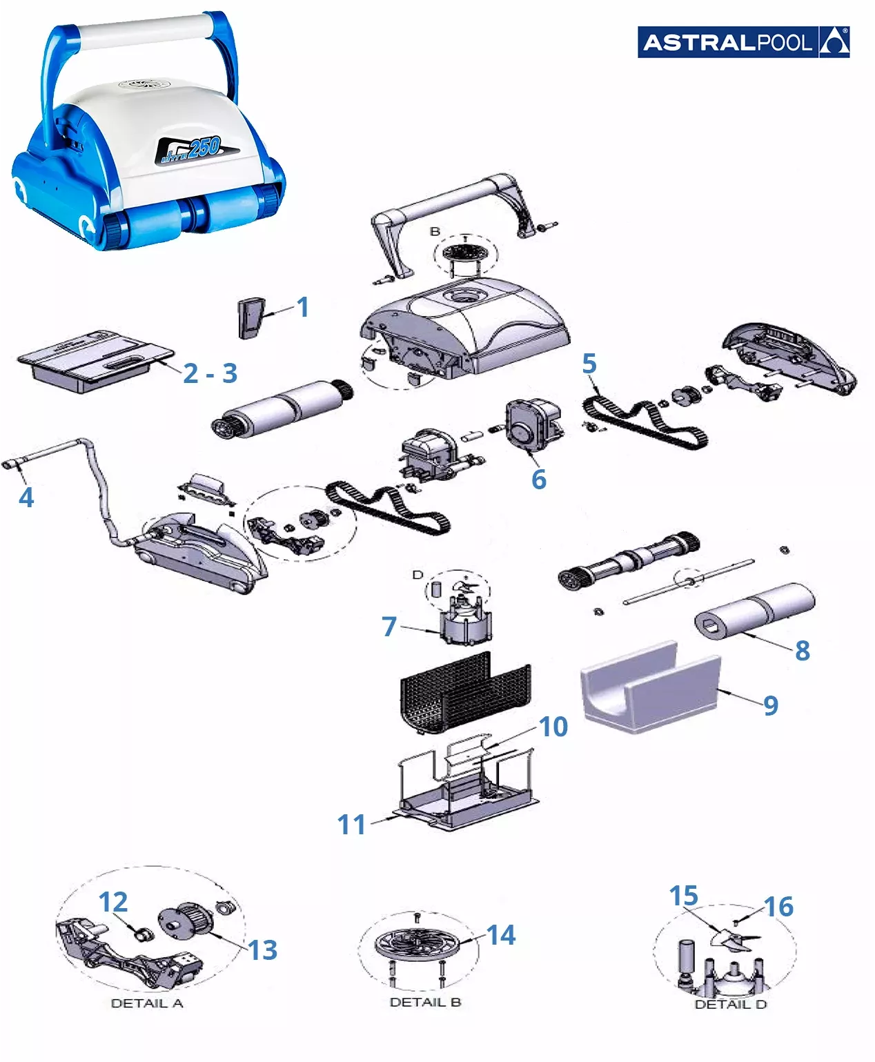 Pièces détachées pour nettoyeurs de piscine Astralpool