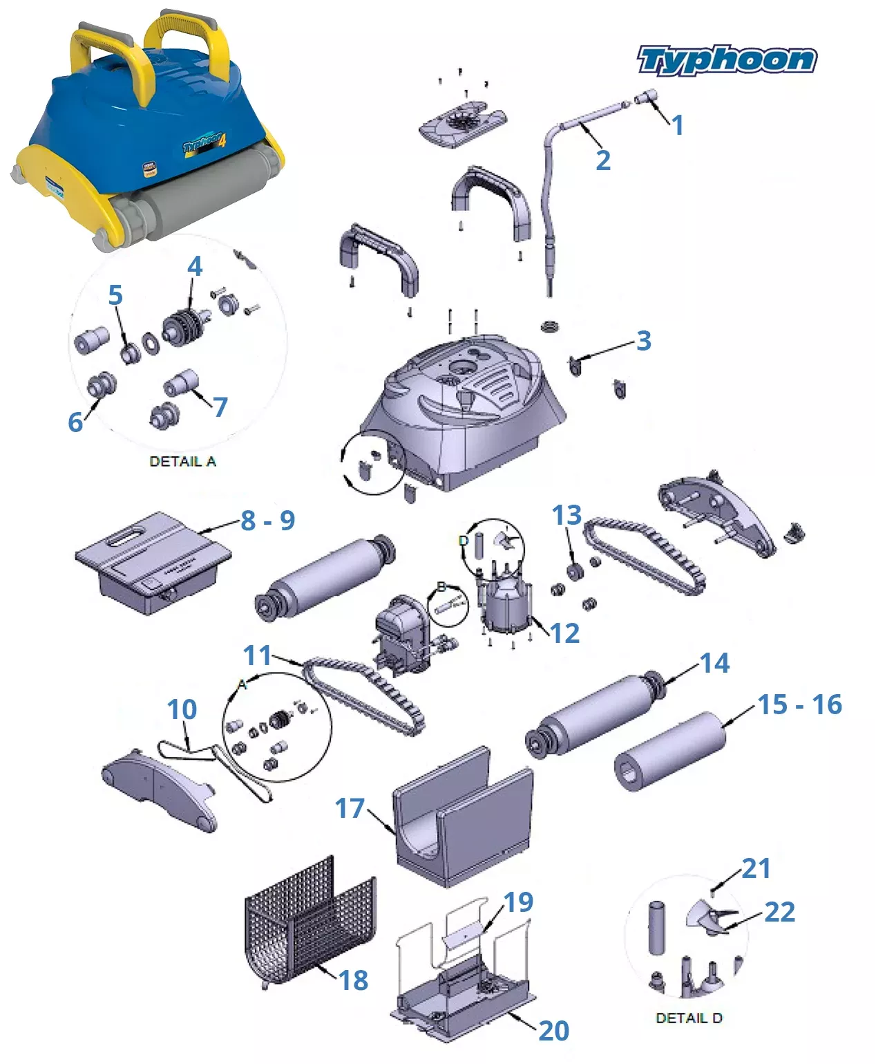 Pièces détachées pour nettoyeurs de piscine Typhoon