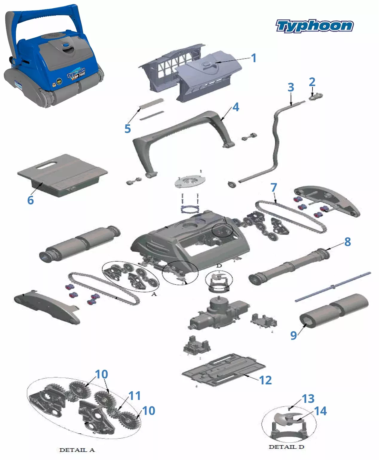 Pièces détachées pour nettoyeurs de piscine Typhoon