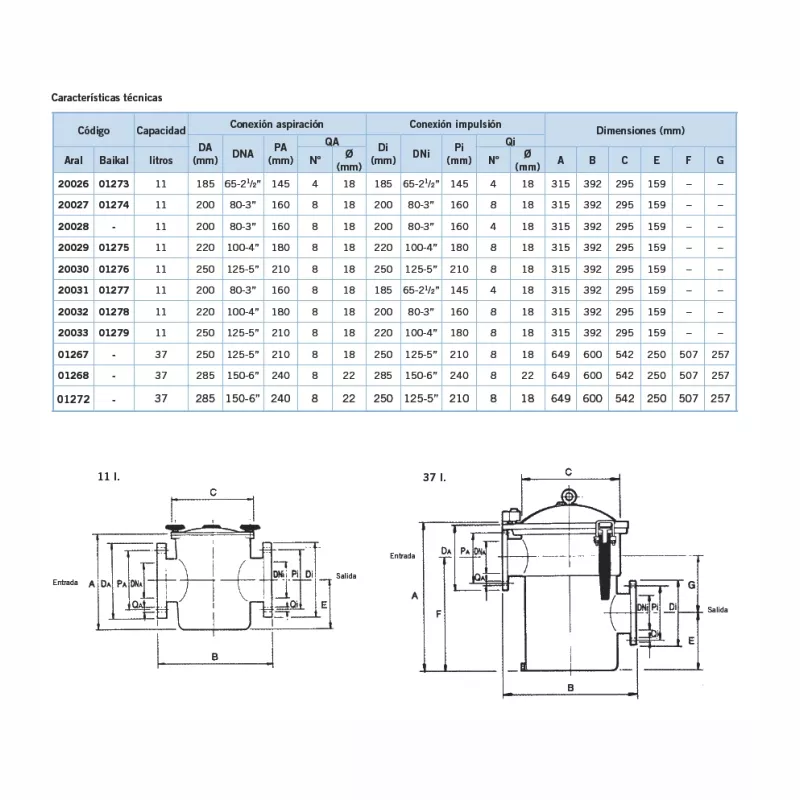 Préfiltre Aral 11 l. Astralpool Brides DN 65