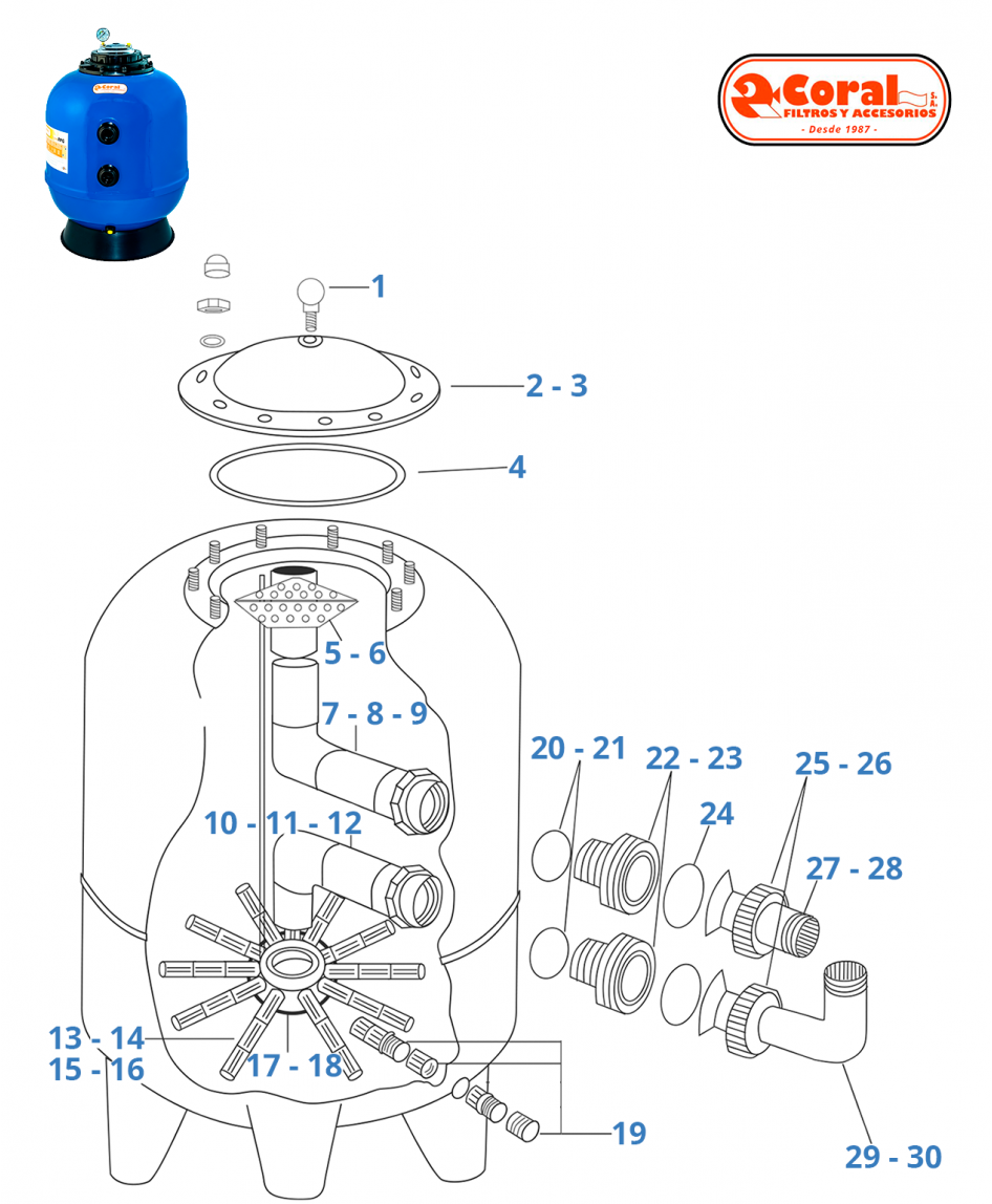 Coral Filtro di ricambio Gruppo gomito inferiore 780