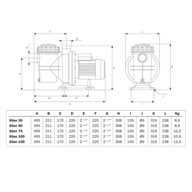 Caratteristiche della pompa per piscina Espa Silen 150 Trifase.